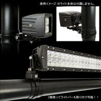 SUVや4×4車のグリルガードやルーフキャリア、船舶のデッキ、建築現場〜倉庫などの丸パイプにワークライトをガッチリ固定できるブラケットキットです。