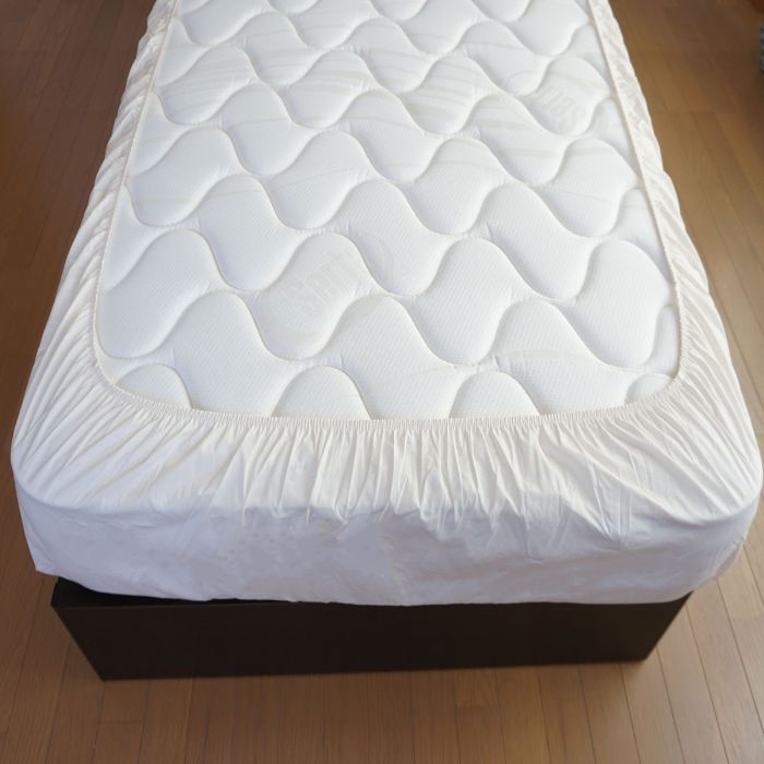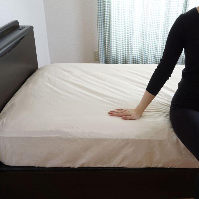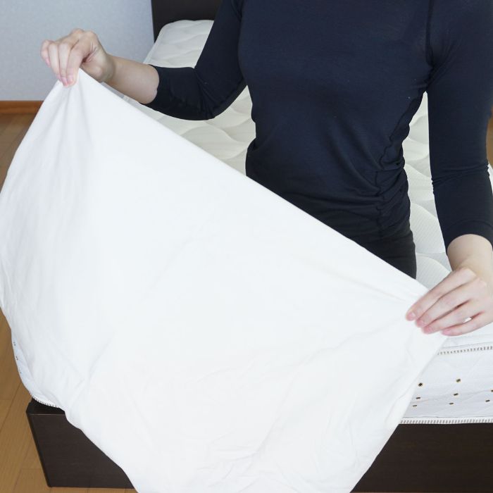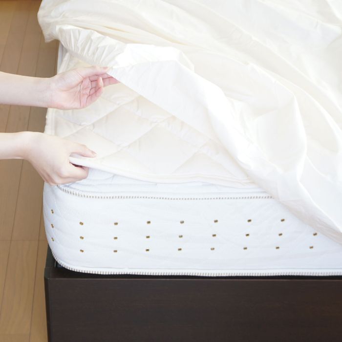 マットレス→ベッドパッド→ボックスシーツの順にセットボックスシーツはマットレスに汚れが付くのを防止する役割があります。