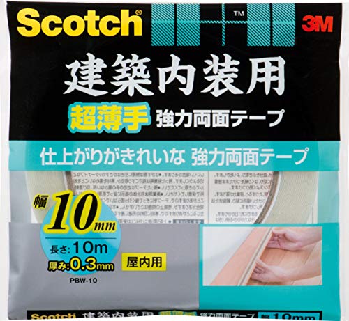 商品名:3M 両面テープ 建築 内装用 超薄手 厚み0.3m 幅10mm 長さ10m スコッチ PBW-10 巾木 腰壁 内装ボード 仮固定