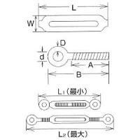 ●ねじ径:M3●使用荷重(kN):0.39●L2(mm):108●D(mm):2.6●A(mm):22●L1(mm):80●B(mm):40●L(mm):45●W(mm):8.5●質量(g):10●d (mm):7.5