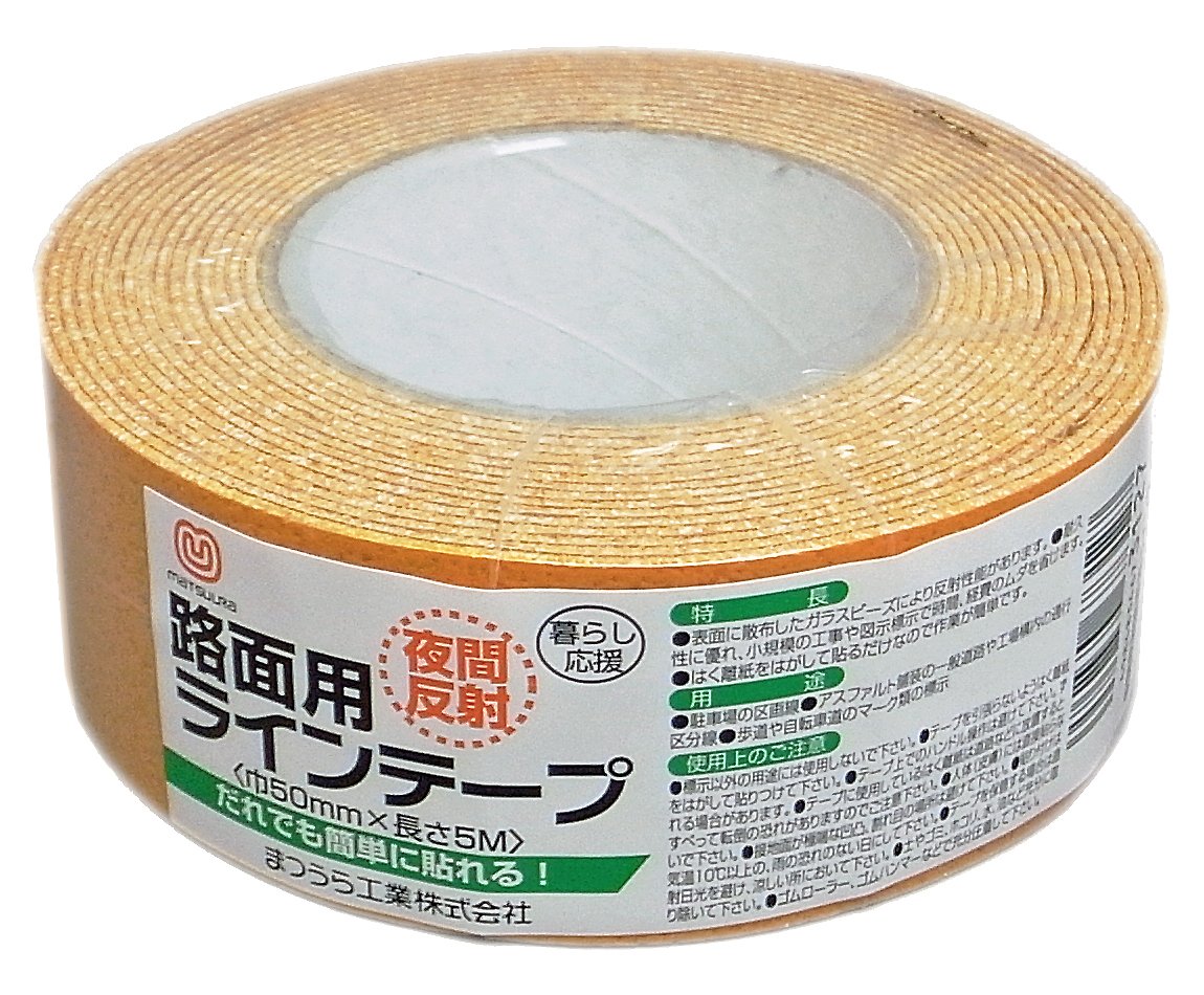 商品名:まつうら工業 屋内外用 路面反射ラインテープ 幅50mm 長さ5m 黄