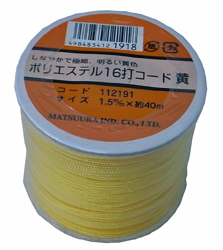 商品名:まつうら工業 ポリエステル製 16打コード 芯なし 太さ約1.5mm 長さ40m 黄 ボビン巻