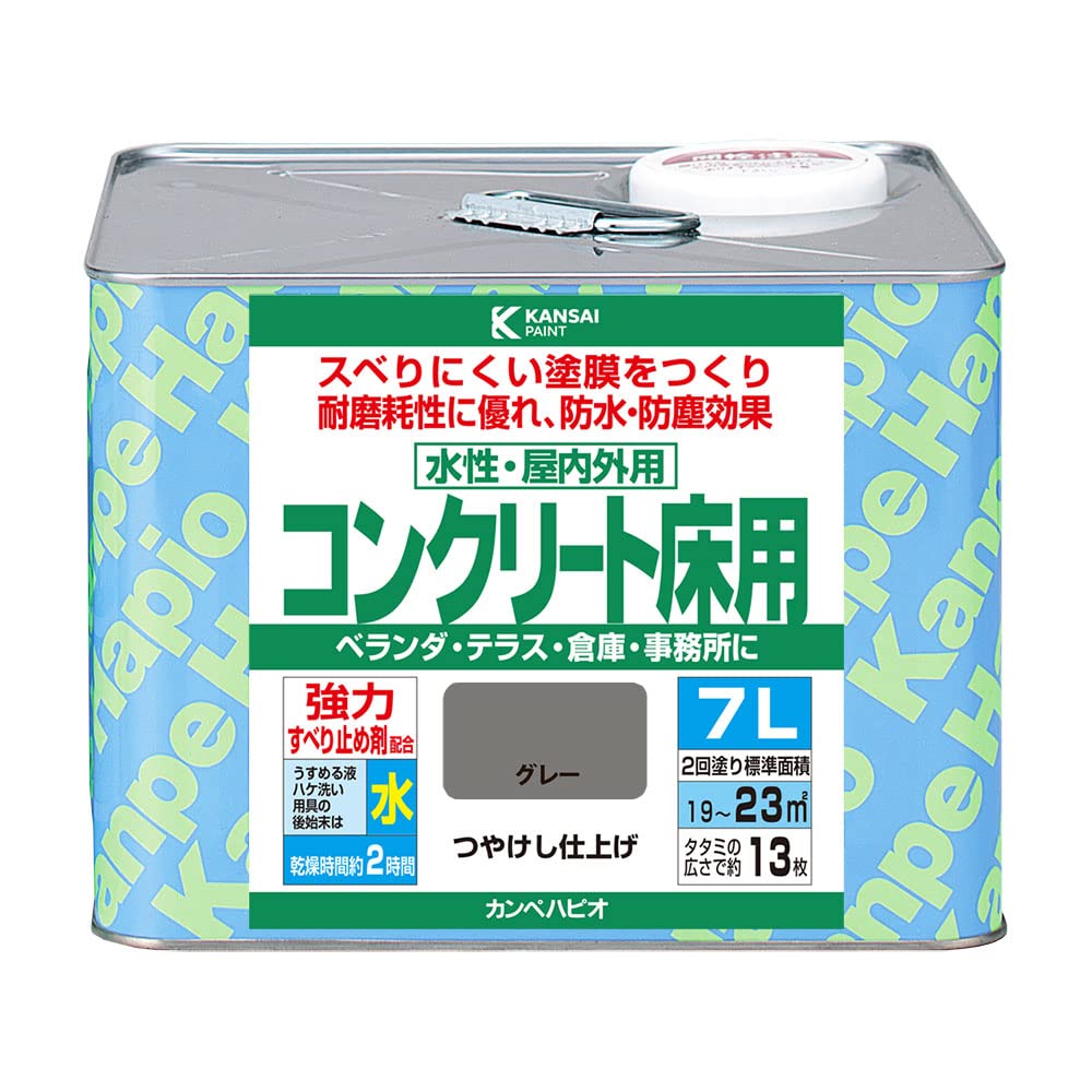 カンペハピオ(Kanpe Hapio) ペンキ 塗料 水性 つやけし 床用 耐摩耗性 高耐水 防塵 防汚 水性コンクリート床用 グレー 7L 日本製