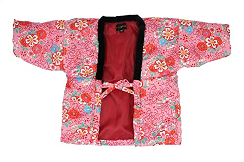 子供(女児用)あったか半天! <カラー> 1:濃ピンク(八重桜) 2:ピンク(桜・菊) 3:オレンジ(まり) 4:赤(花・りぼん) <サイズ> 【110サイズ】 胸囲 約80