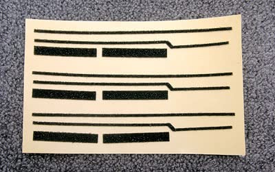 1. 古いモルトを付属の竹串などで剥がしてきれいにします。 2. アルコールやベンジンを綿棒に浸してこすり、貼る部分の汚れを落とします。 3. 新しいモルトを台紙から剥がします。 4. 粘着面にアルコールか水を塗ります。アルコールか水で粘着面が湿っている間は、テープの粘着力が一時的に落ちますので、位置あわせと貼り直しがやりやすくなります。 5. 溝の上にだいたいの位置あわせをしてモルトを置きます。 6. マイナスドライバーや先を平たくした竹串などでモルトが転けないように押し込んでいきます。アルコールか水が乾く前なら、貼り直しが効きますので、落ち着いて作業をしてください。 3台分入っておりますので、2回は練習する事ができます。失敗しても3回目にはきちんと貼り付けられるはずですので、安心です。