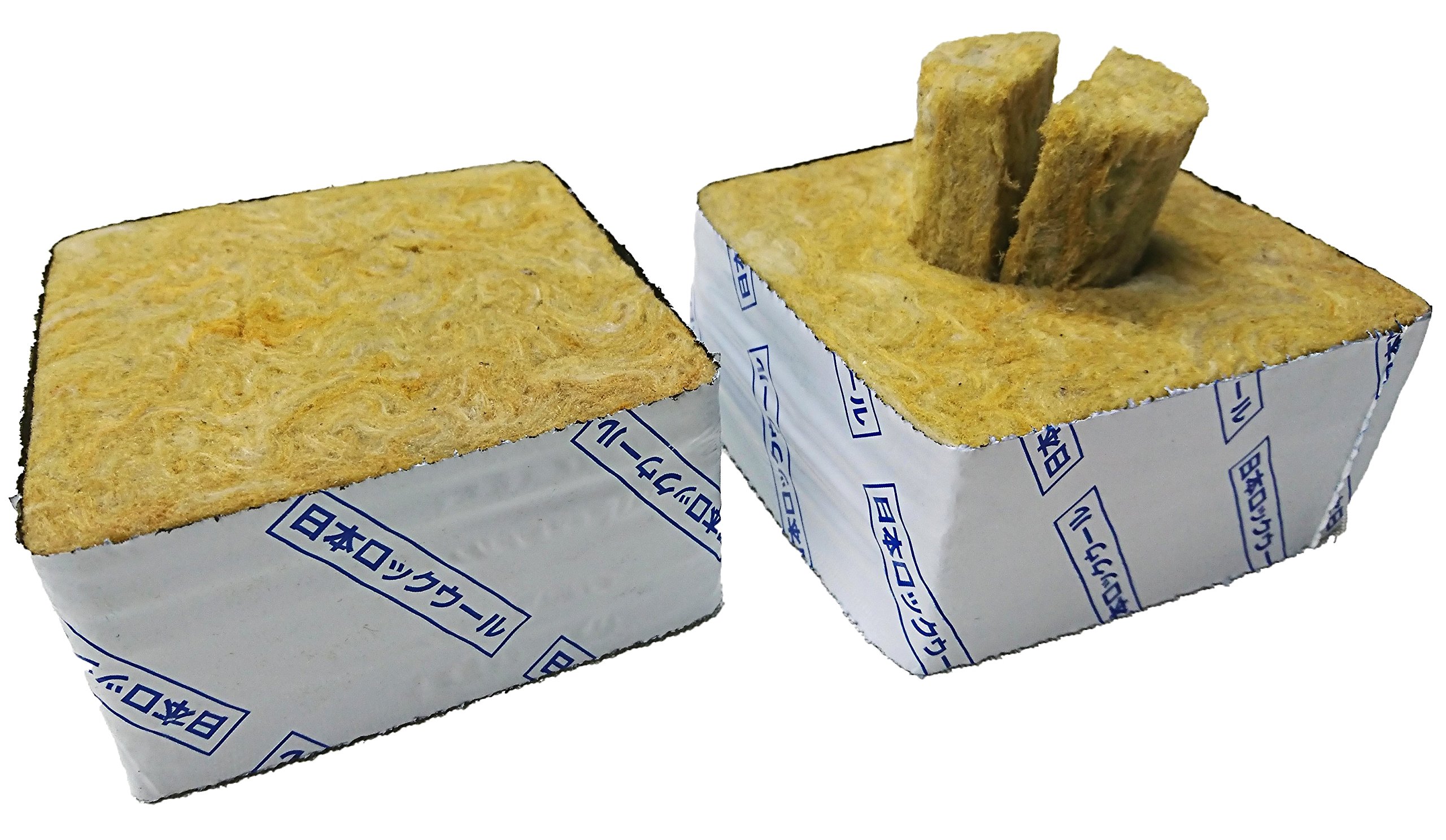 50H×100W×100Lの12個入です。中央に円柱(40φ)カットを施し、さらに切れ目をいれた製品です。底面から中央部を押し上げると円柱が突出します。特に双葉が開いた幼苗を仮植するのに最適です。裏面が遮光性の特殊ポリで側面を包んでいます。国産ロックウールなのでほぼ無菌状態、お望みの液肥などの効果が期待通りに出るので非常にコントローラブルな製品です。人口光利用型の植物工場、屋内での栽培に適しています。培地内での固層・液層・気層バランスが良いので発芽率・発芽揃いの向上につながります。
