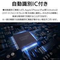 USBポート2口は、最大5V/2.4Aの分配出力タイプです。 自動識別IC機能によりAppleとAndroidを自動に識別し、それぞれの機種に最適な電流値で充電できます。