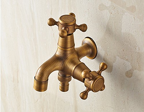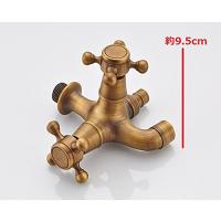 ■アンティーク調で高級感のあるオシャレな真鍮製の蛇口です。■取っ手は回しやすく、上品なデザインの十文字。蛇口の全開閉は 90度です。それ以上回すと破損の原因になりますのでご注意ください。■蛇口先端は、スタンダードな泡口タイプと、ホースを直接接続できるタイプが2口ついています。用途にあわせて自在にお使いいただけます。
