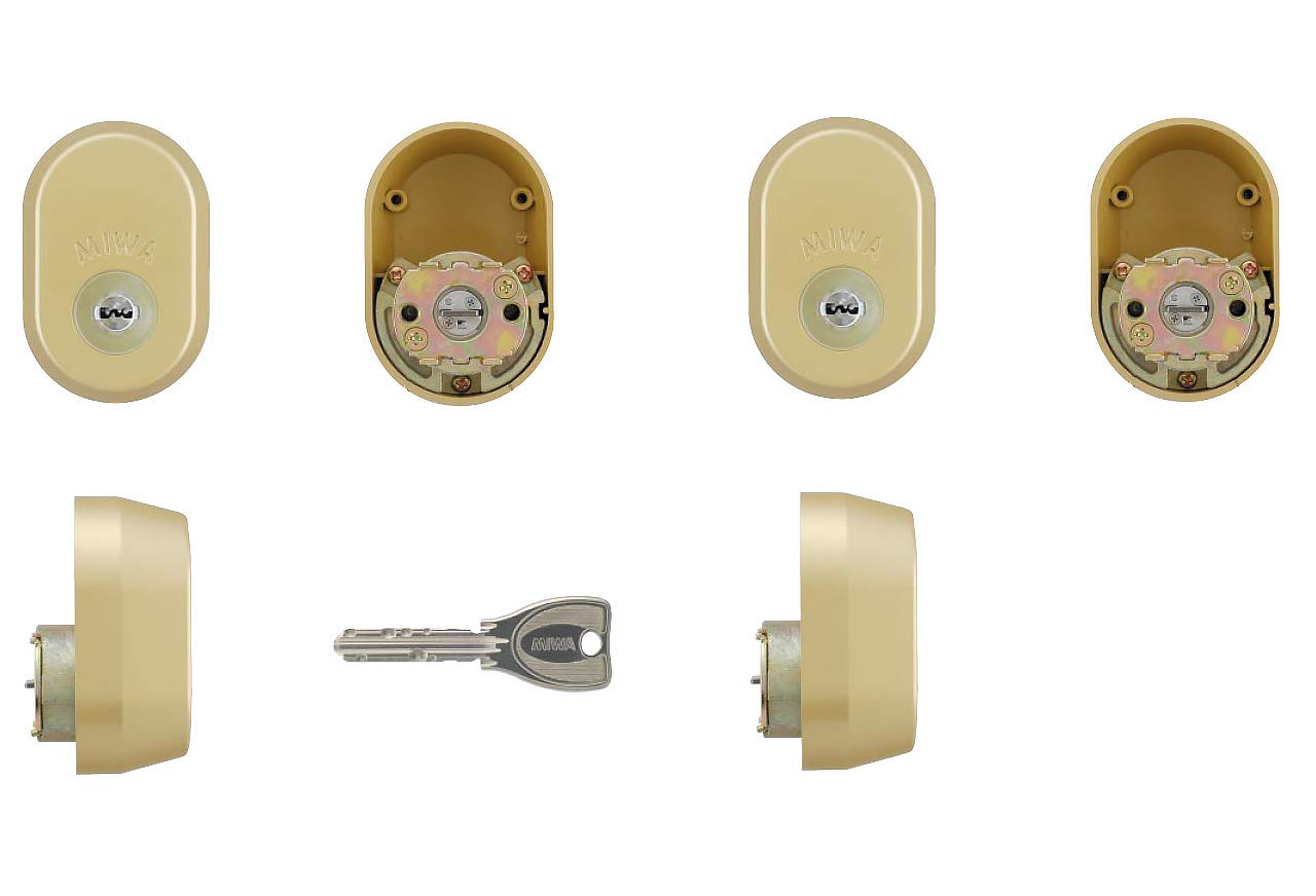 PRシリンダーGAF+FE用2個セットの商品です。上下2つのシリンダーを1つのキーで施解錠できる同一キー仕様です。三協アルミ、新日軽の玄関ドアに小判型のシリンダーが上下に2個付いているタイプです。ドア側面のフロント部にメーカー「MIWA」と型番「GAF」「FE」の刻印があります。