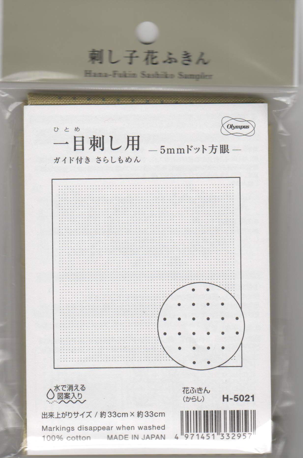 オリムパス製絲 刺し子布パック 刺し子花ふきん 一目刺し用 ガイド付きさらしもめん -5mmドット方眼- (からし) H-5021 ※水で消える図案入