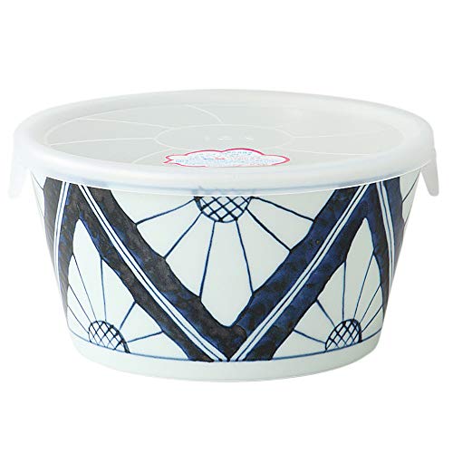 波佐見焼 染付紋 中鉢 13.5cm 蓋付き ノンラップ 菊紋 19345