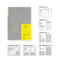 SUNNY NOTEとセットで使って、あなたにぴったりな仕事ノートにカスタマイズ! 毎日持ち歩く仕事ノートSUNNY NOTE(別売)にあなたにぴったりの機能をプラス! オンもオフも、やりたいことを書き出せるWISH LIST 毎日の隙間時間にWISH LISTを書きとめ、見直すことで充実した日々に。 ・全32ページ ・WISH LIST×6ページ ・BOOK LIST×2ページ ・MOVIE LIST×2ページ ・MY TREASURE LIST×2ページ ・WORLD MAP×2ページ ・JAPANESE MAP×2ページ ・FREE NOTE(ドット方眼)×15ページ