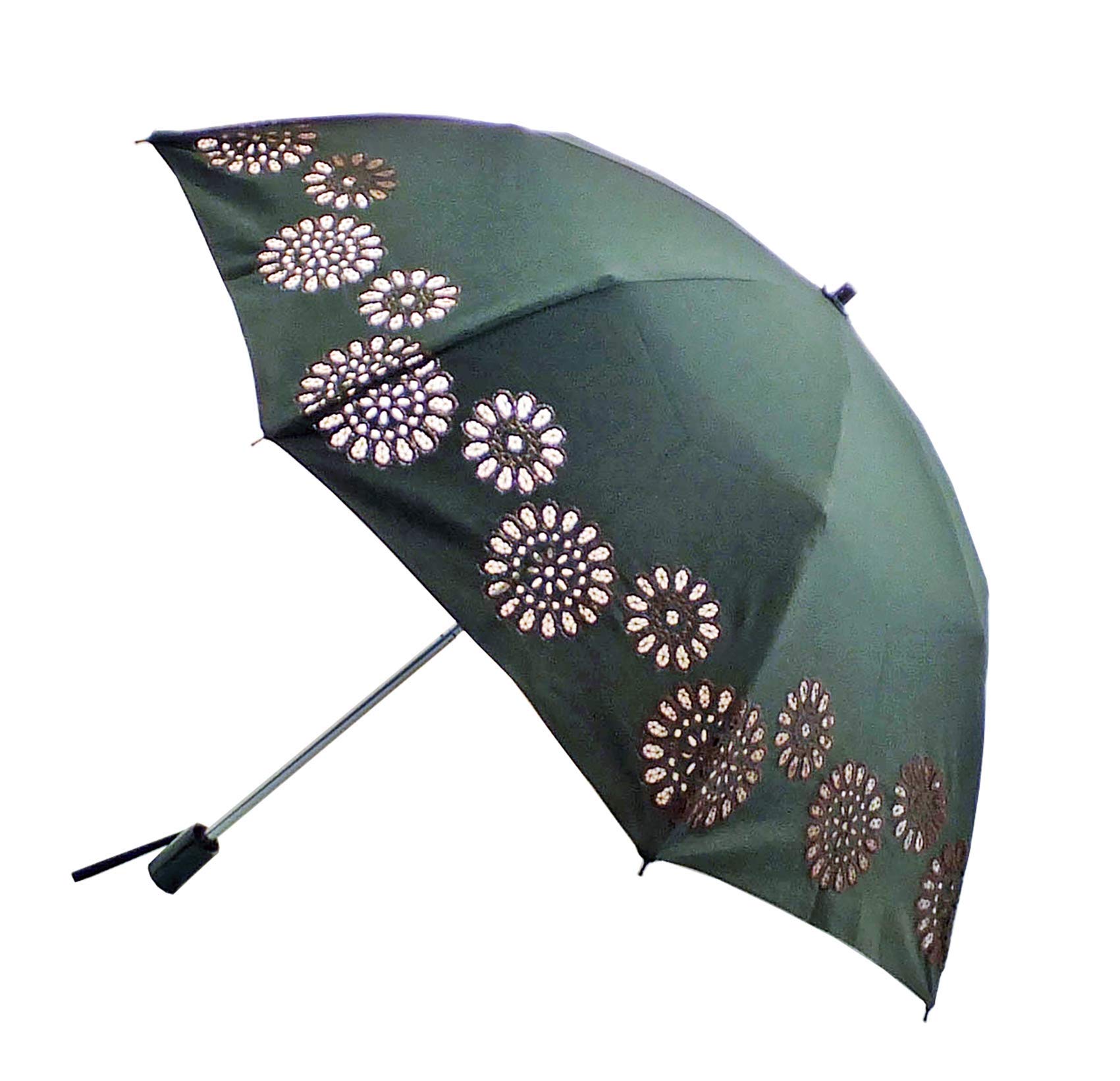 商品名:【日本製】麻エンブロイダリー刺繍 パラソル 折りたたみ傘 21-5059カーキ