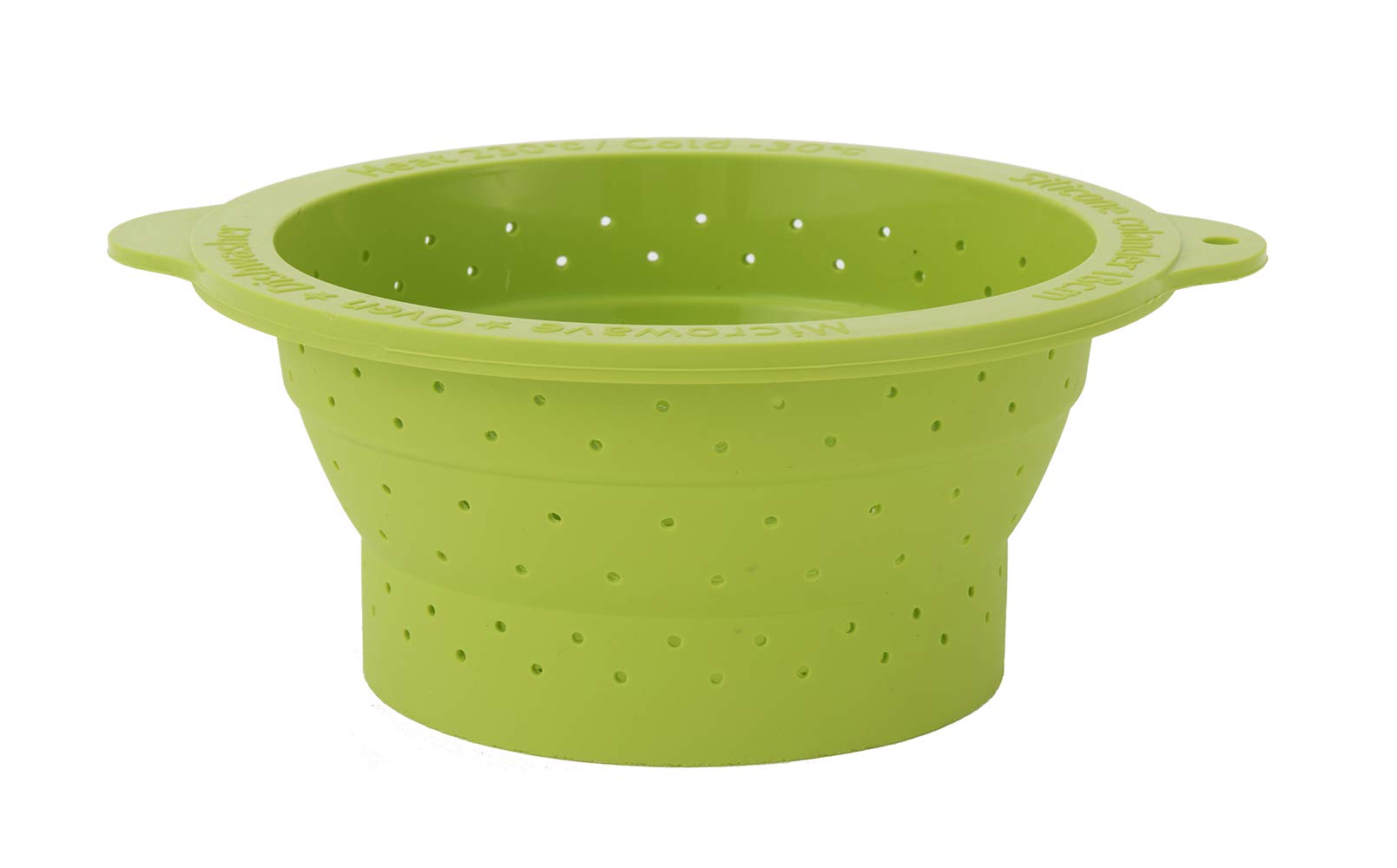 高さが約1/3に折りたためる、収納しやすいシリコンざる。