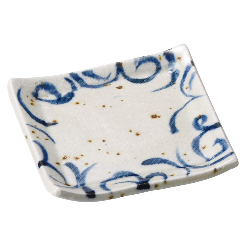 丸伊製陶 信楽焼 へちもん 角皿 9cm 呉須丸 MR-3-3438