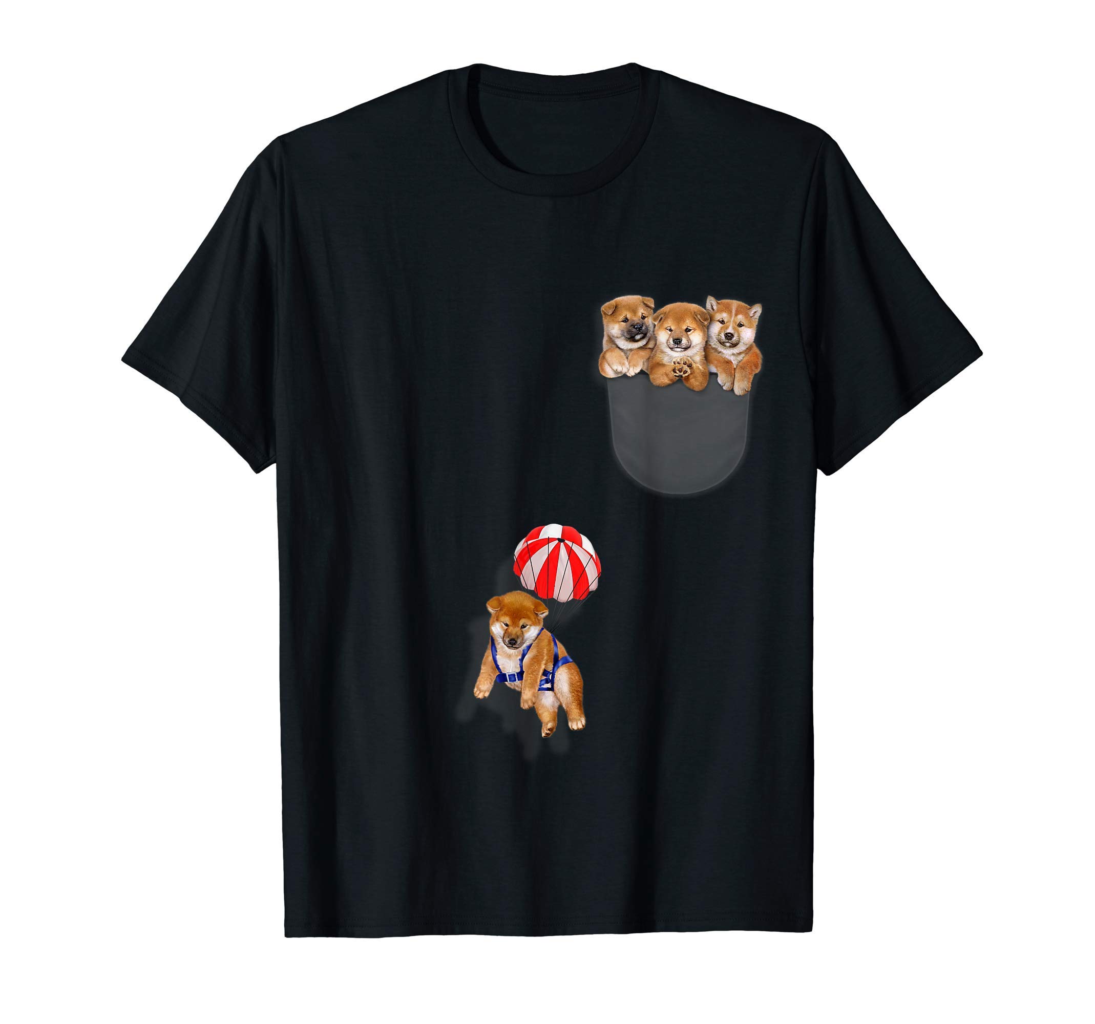 商品名:ポケット 子犬 柴犬 パラシュート 犬 Tシャツ