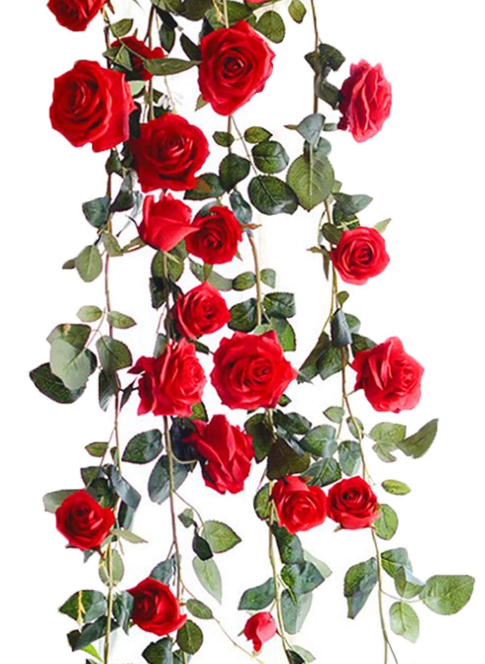Kugusa バラ ガーランド 造花 インテリア シルクフラワー スワッグ 装飾 パーティー (赤・レッド) 1本