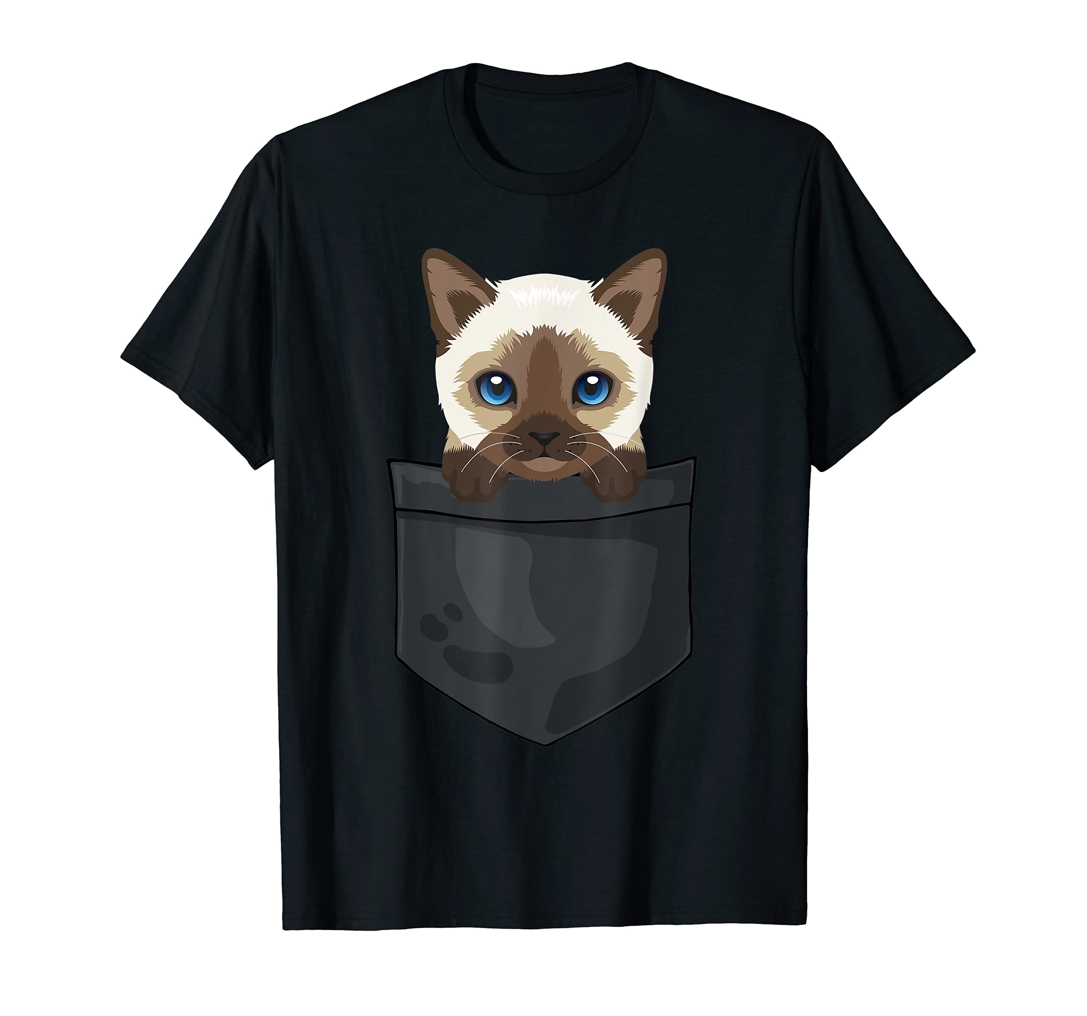 ポケットから覗くシャム猫をフィーチャーしたこのかわいい猫のデザインは、素晴らしい猫愛好家のプレゼントです。注意:ポケットは2Dプリントであり、実際のポケットではありません。