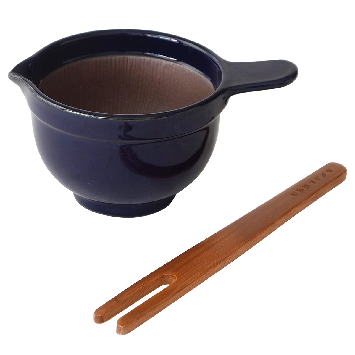 商品名:かもしか道具店 なっとうバチ ふつう まぜ棒つき 竹 納豆 納豆鉢 小鉢 萬古焼 日本製 (藍)