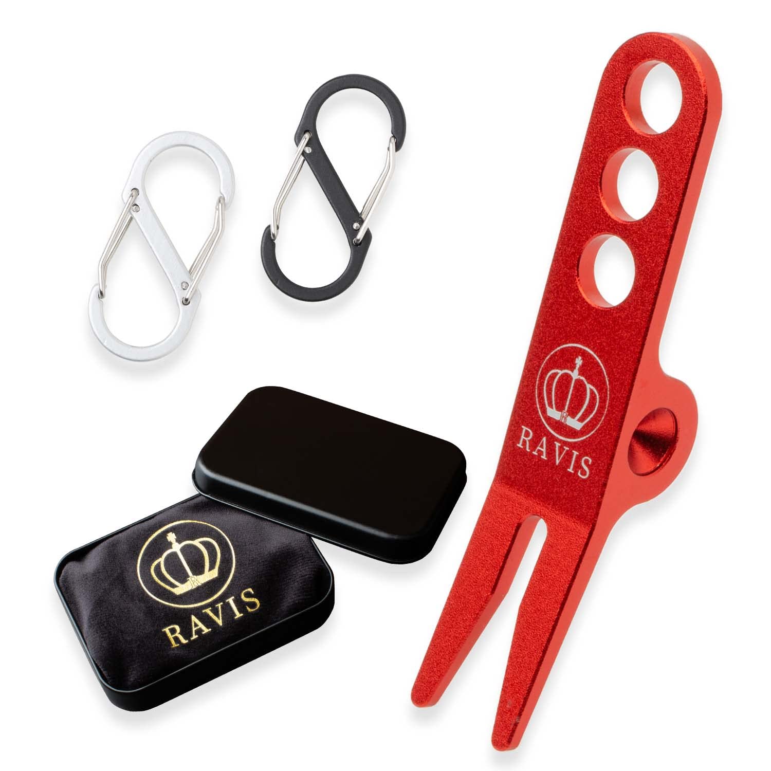 ファッションを楽しむ全てのゴルファーへ!デザイン性と機能美を兼ね備えた匠のグリーンフォーク ★デザイン性と機能美を兼ね備えたプロダクト! RAVISはファッショナブルなゴルファーを応援するハイクオリティファッションブランドです。 ラウンドアイテム1つで気分が上がる。その日の気分に合わせて選べる2色のカラビナ付きのスタイリッシュなグリーンフォークセットをお届けします。 スッキリと晴れわたったゴルフ日よりにはもちろん、雨天や曇りの中でも映えるメタリックカラー。明るく目を引くカラーを身に着けてみませんか。 RAVISはグリーン上でおしゃれを楽しむ全てのゴルファーを応援します。 ★【ポイント1】グリーンに映える美しいカラー★ 男女ゴルファーの声から選ばれた人気の5色展開。グリーンで映えるおしゃれなメタリックカラーのグリーンフォークです ★【ポイント2】カラビナ2色 付き★ カラビナはブラックとシルバーの2色セット。その日の気分に合わせてグリーンフォークとのコーディネートをお楽しみいただけます。 ★【ポイント3】RAVIS特注・巾着袋付き★ 抜群に高級感のあるRAVIS特注・ベロア巾着付。グリーンフォークはもちろんラウンドアイテムの収納に便利です。