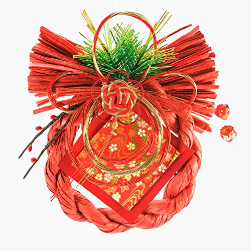 迎春 正月飾り しめ飾り 玄関飾り 和モダンお正月飾り 水引飾り 初穂飾り 注連縄 リース 天然素材 しめ縄 モダン 玄関 神棚 台所 おしゃれ (赤