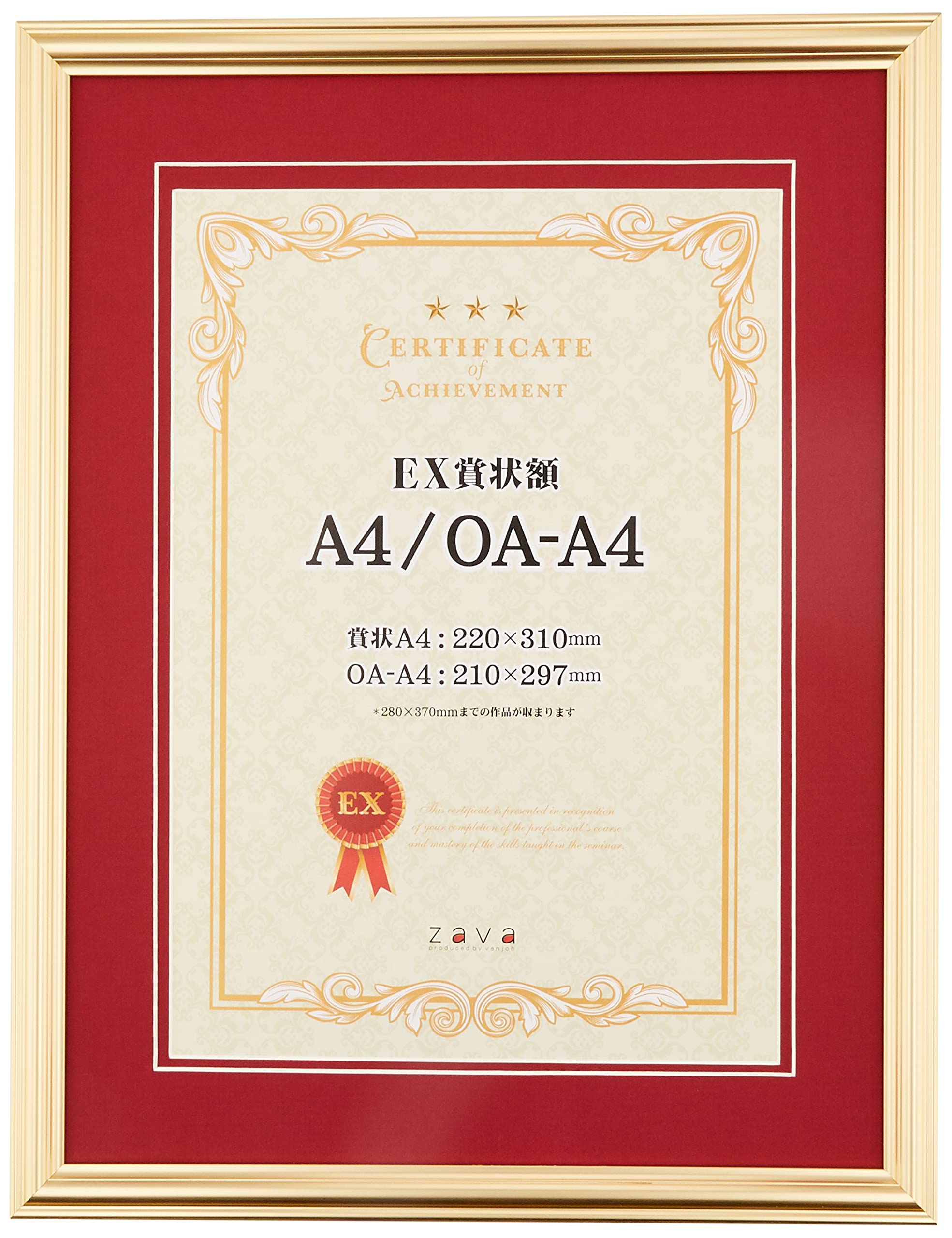 商品名:万丈 VANJOH EX賞状額A4兼用判 ゴールド(マット赤) 106633