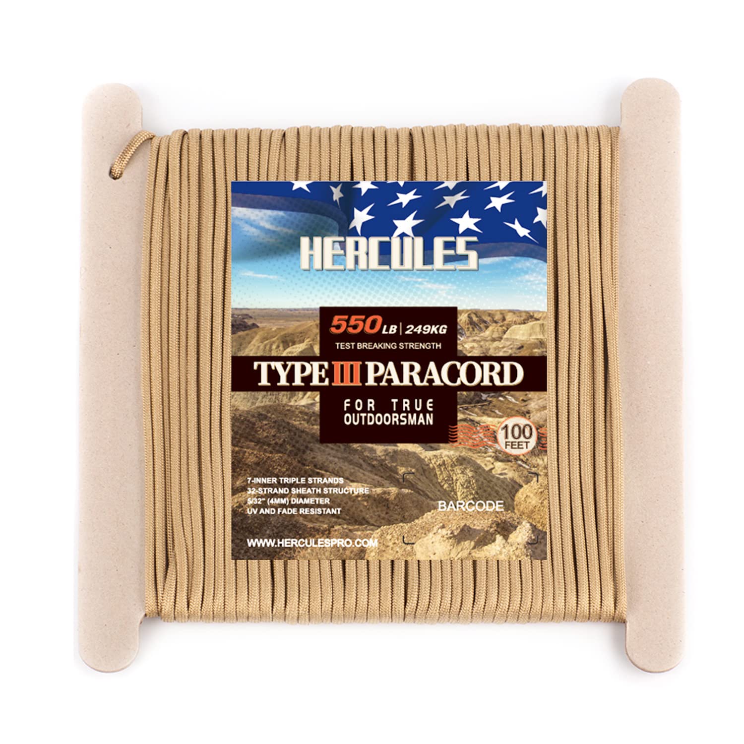 HERCULES パラコード ガイロープ キャンプロープ テントロープ アウトドア 用 耐荷重250kg 7芯 カーキ 30m