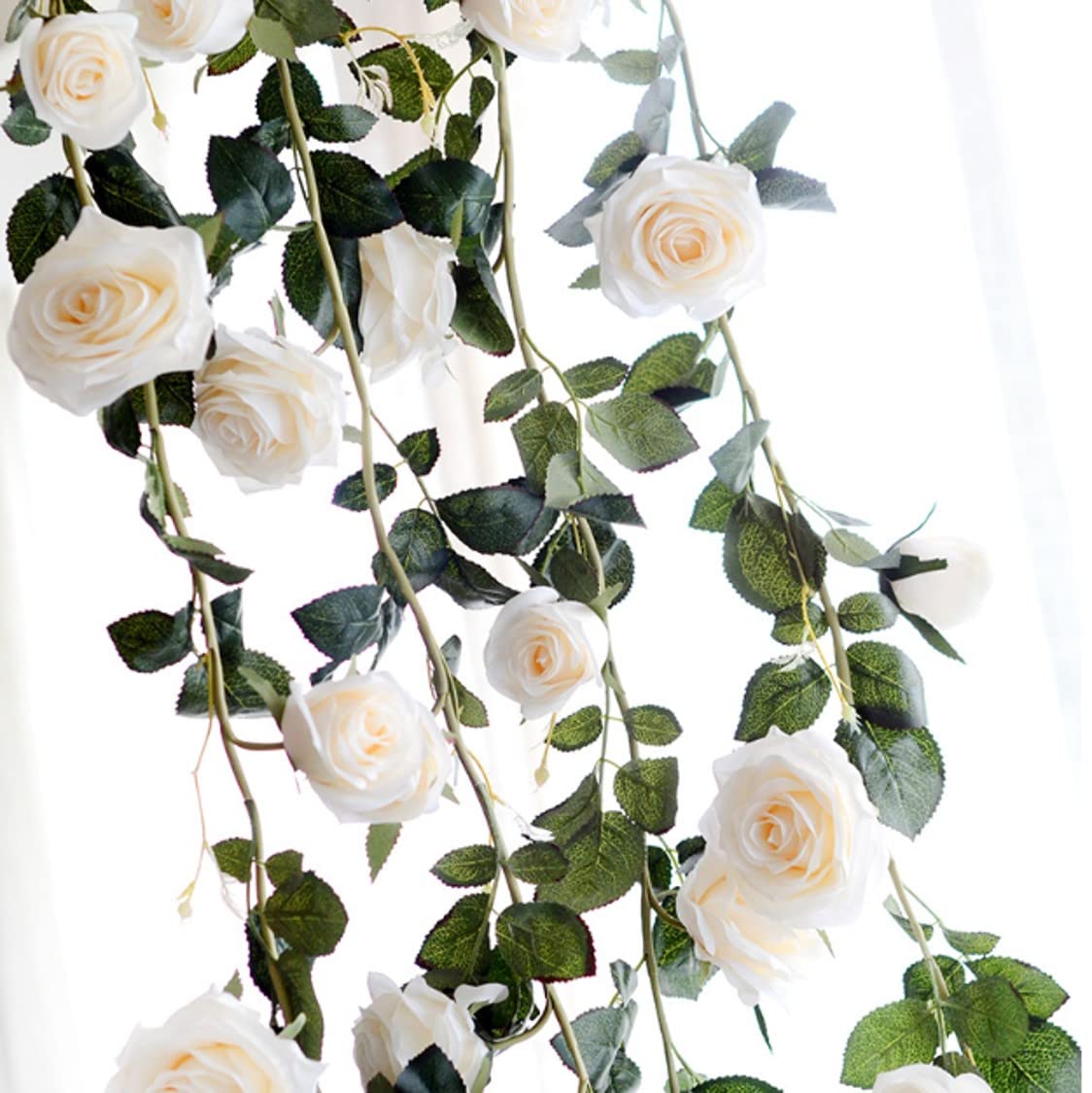 ST TS バラ 薔薇 ガーランド 造花 シルク フラワー インテリア スワッグ 結婚式 パーティー 飾り付け 装飾 (02 白・ホワイト)