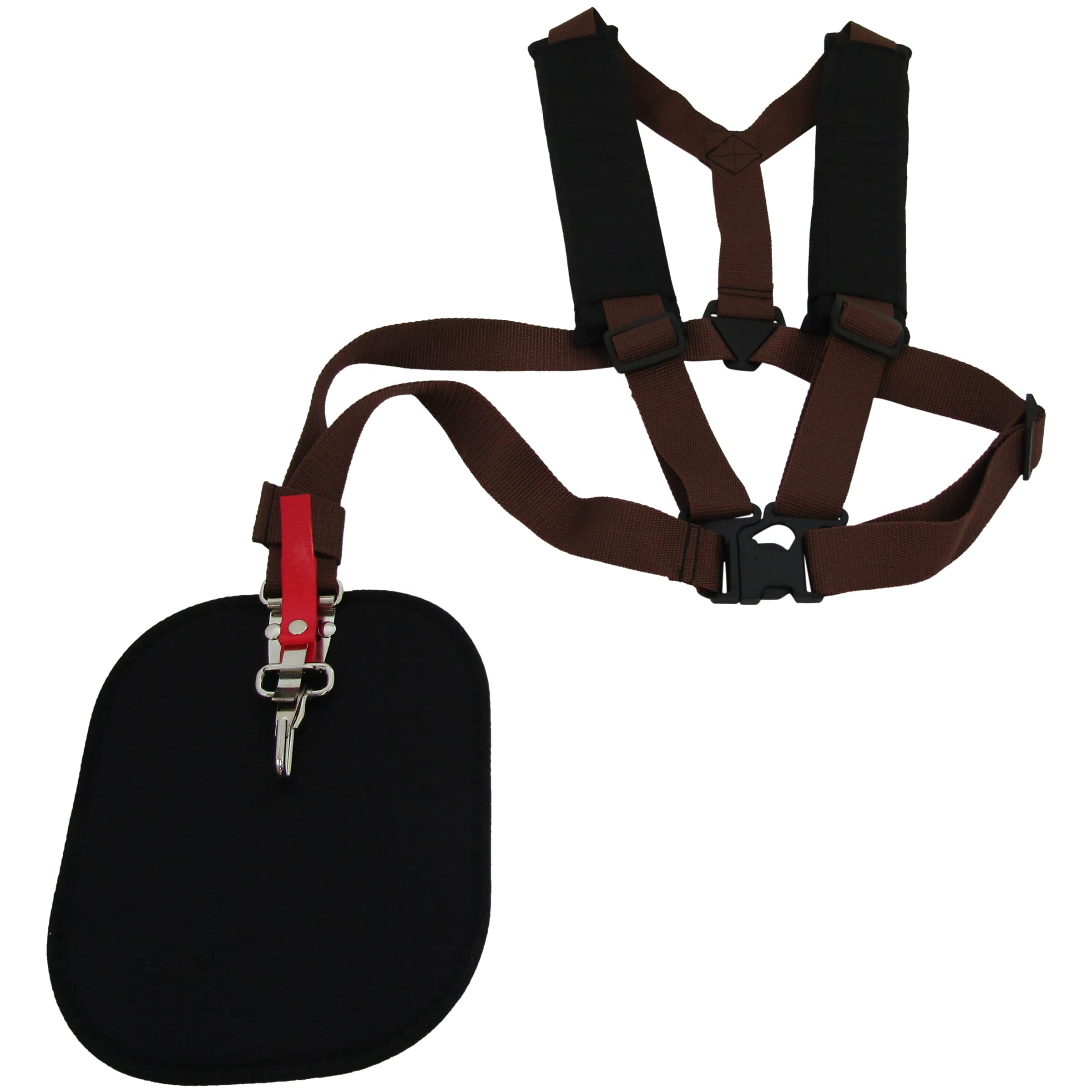 いざという時に金具に付いている赤いバンドを引くと刈払機を本品から一発で外せます!!