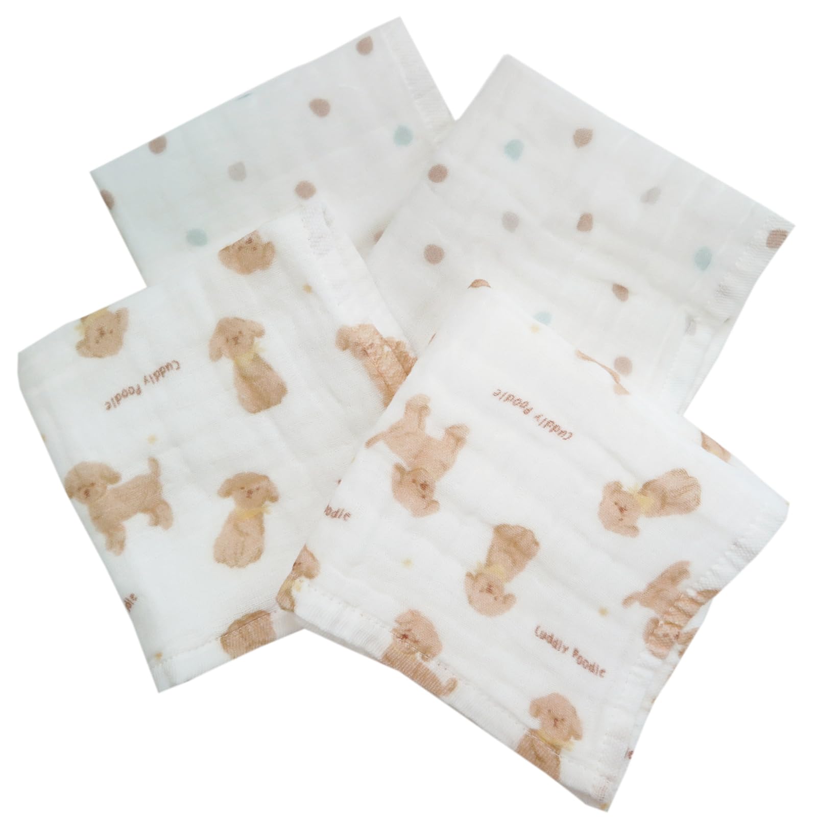 6重ガーゼハンカチ4枚組 プードル・ドット柄
