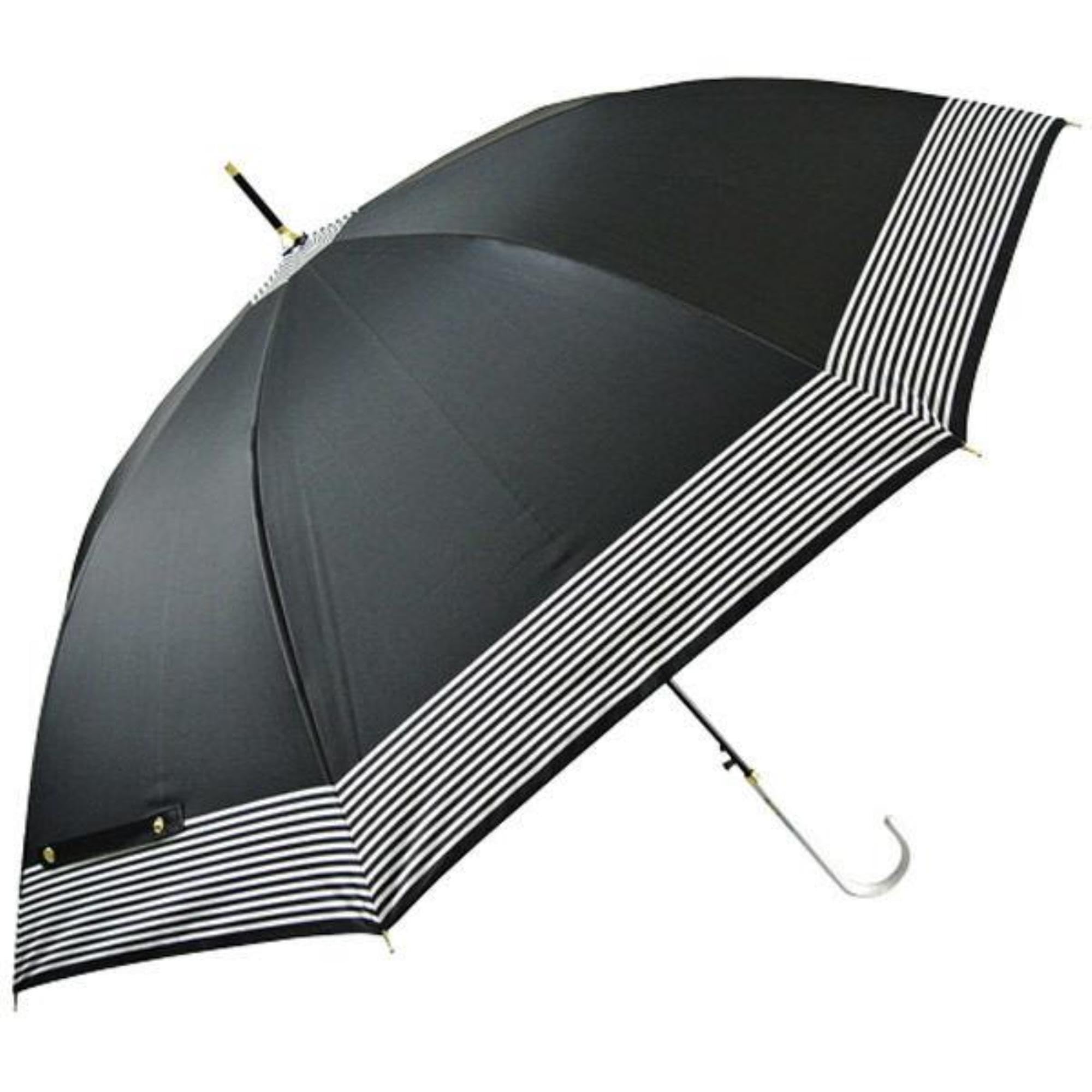商品名:ベーシックスタンダード 長傘 日傘 晴雨兼用 レディース 58cm UVカット100 UPF50+ 内側特殊コーティング 一級遮光 遮熱 軽量 丈夫 耐風 グラスファイバー親骨 ワンタッチ ジャンプ傘 おしゃれ ボーダー 黒