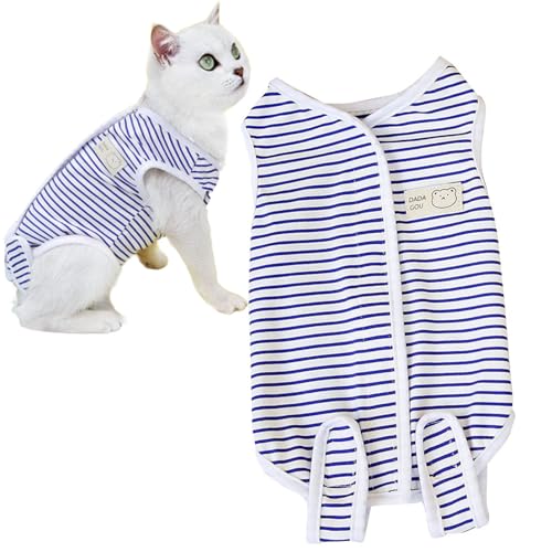 DFsucces 術後服 猫用 ペット服 産後服 離乳服 不妊手術 不妊服 傷口保護 皮膚保護 引っ掻き防止 舐め防止 (M-青)