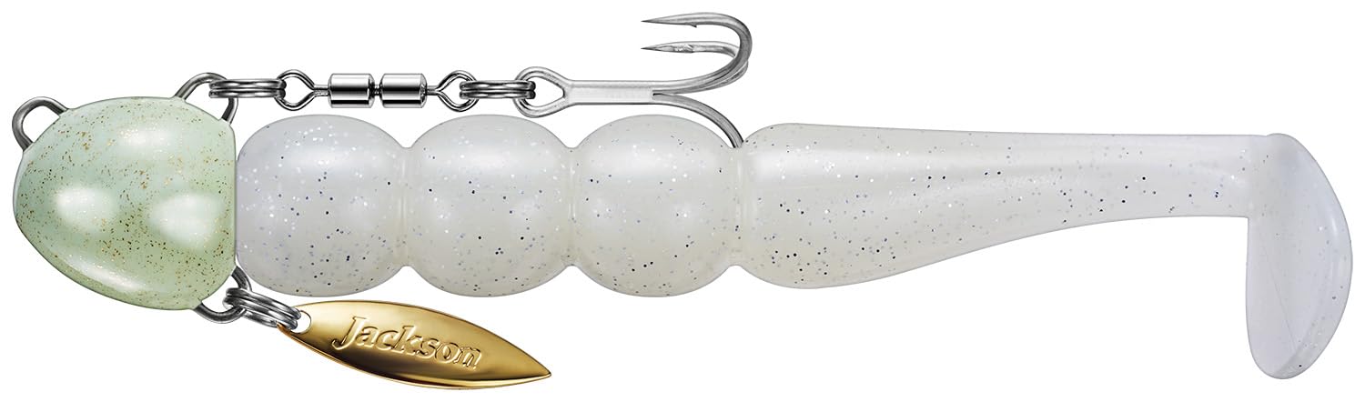 腹部の小型ウィローブレードがワームでは出せないフラッシングでさらにアピールします。