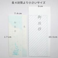 挨拶状のサイズ(折った状態:横 約7.4cm 縦 約17cm 広げた状態:横 約13cm)。長4封筒より小型サイズになります。