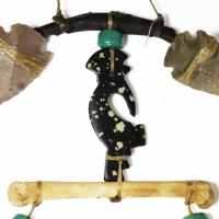 ホピ族・カチナの精霊ココペリ(笛を吹いて幸運を運ぶ精霊)が輪の中でココペリダンスをしている魔除けのお守りです。