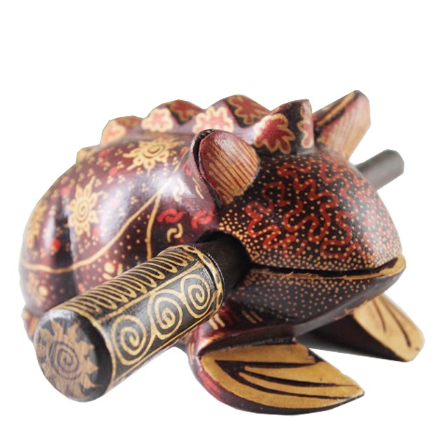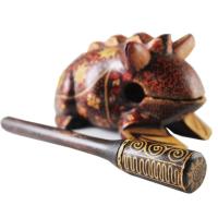 背中を付属のバチでこするとアマガエルのような音が楽しめます。又、木魚のように叩く使い方もあります。