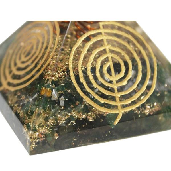 ピラミッドの四方に、マントラの第一シンボル 超空霊(チョクレイ)が描かれた、レイキを創り出すオルゴナイトです。