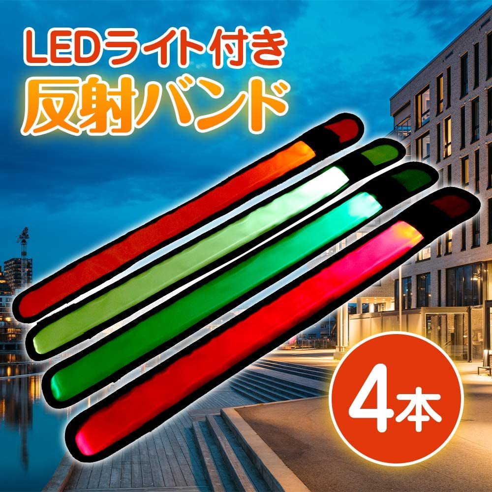 LED 反射バンド 4色セット 暗闇で光る 視認性 防犯 事故防止 夜間 ランニング ウォーキング 散歩 自転車