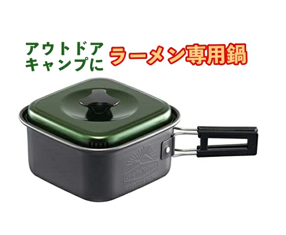 ラーメン鍋 角型 グリーン アルミ製 アウトドア キャンプ バーベキュー ひとりキャンプ クッカー 袋麺 軽量 スタック スタッキング アルマイト加工 スケーター
