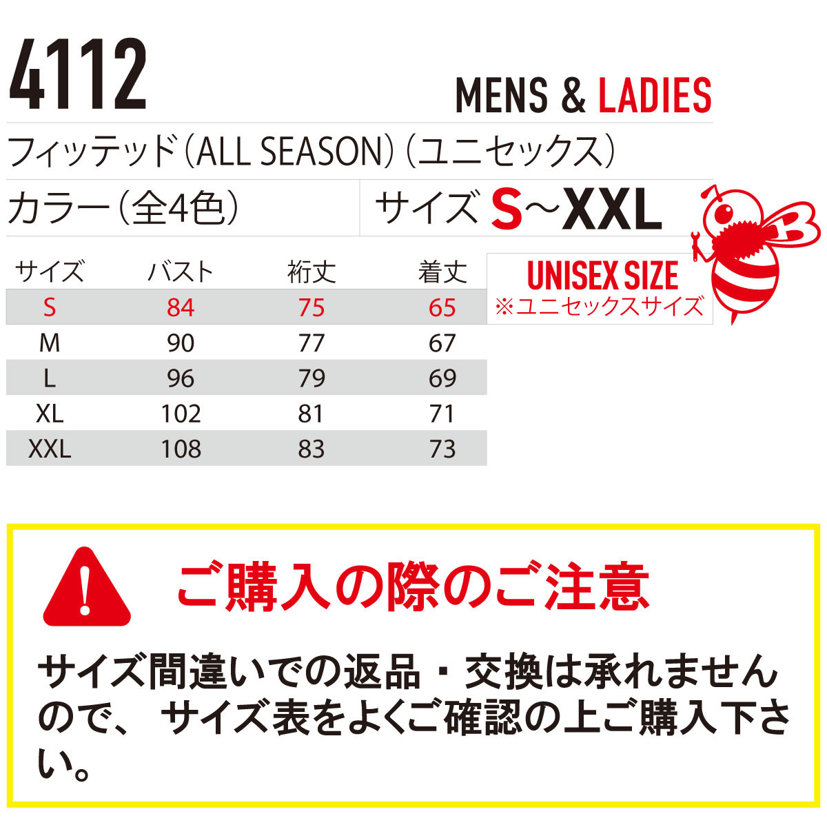 BURTLE 4112 バートル フィッティッド オールシーズン対応(ユニセックス)