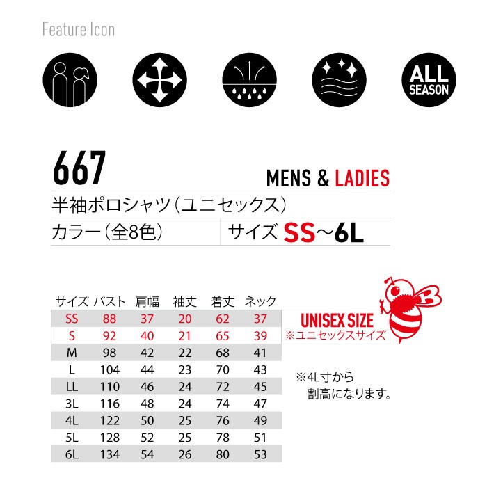 素材/ドライメッシュ鹿の子、吸汗速乾、消臭、ストレッチ(伸長率40%以上)、UVカット(UPF50+)