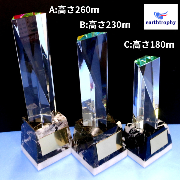 アーストロフィー クリスタルガラス Aサイズ+天然石トロフィーWHH 高さ260mm【プレート彫刻無料】