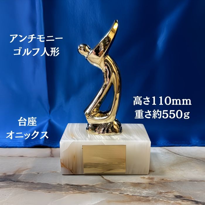 アーストロフィー ゴルフ アンチモニー製 台座オニックス WOX752 ブロンズトロフィー 優勝カップ 表彰 ゴールド