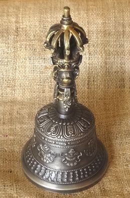 ガンターは、チベット仏教の法具の一つ。鳴らすことで場を浄化し、心身を瞑想状態に落ち着かせるために用います。こちらの商品は5メタル合金を使用した上質モデルで、一般的な真鍮製の製品より長い余韻と深みのある音色が鳴ります。スティックを使って淵を擦るとシンギングボウルのような波動音も鳴らせます。持ち手は仏の智慧を象徴する密教法具「ドルジェ(五鈷杵)」の形が施されています。材質−5メタル(銅、亜鉛、鉄、鉛、錫)サイズ−全高:約15cm、直径:約7cm、重量:260g。