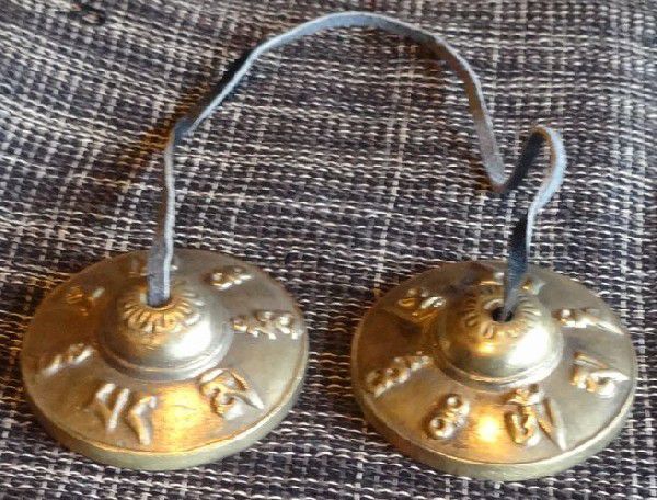 両手に一つずぶら下げて持ち、2つのベルを静かに打ち合わせると、深く澄み渡る、美しい音色が響きます。