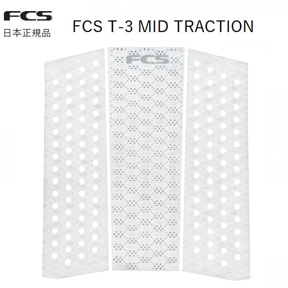 2025 送料無料 日本正規品 FCS T-3 MID TRACTION サーフィン デッキパッド ホワイト 白 FRONT フロントデッキ T3