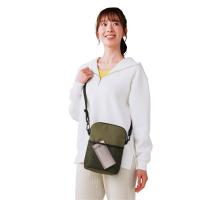 これくらいがちょうどいい!一般的なサイズの500mlペットボトルが2本入る「ちょうどいい」サイズの保冷温ショルダーバッグです。深めのメッシュ製フロントポケットはスマホやチケットの収納にぴったりです。