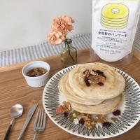 愛知県産の小麦粉《きぬあかり》に国産小麦の石臼挽き全粒粉をブレンドした、もちもち食感が楽しめるパンケーキミックスです。