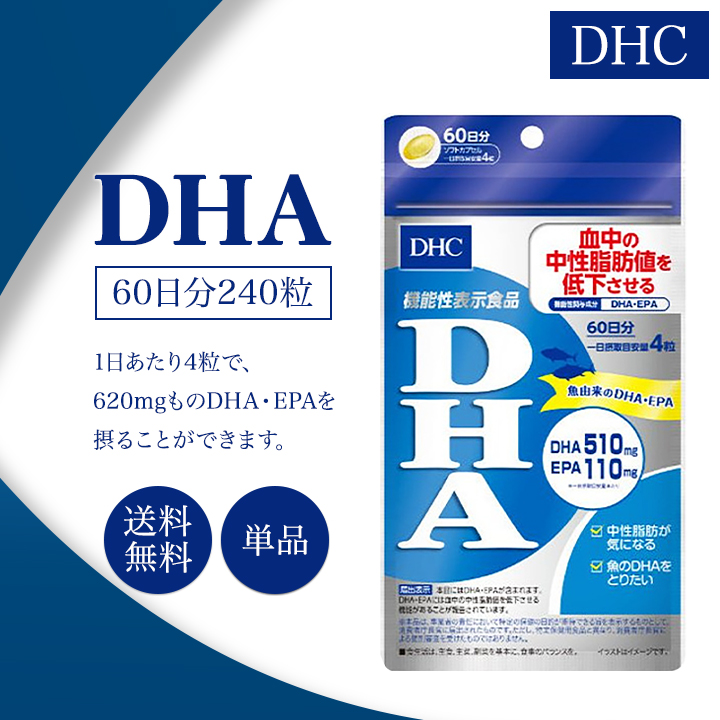 DHC DHA 60日分 240粒 サプリメント 機能性表示食品 健康食品 ディーエイチシー 中性脂肪 オメガ3 食事 美容 女性 頭脳 コレステロール ビタミン 青魚 美容