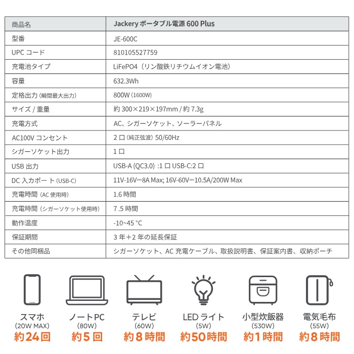 ジャクリ Jackery ポータブル電源 600 Plus ブラック JE-600C